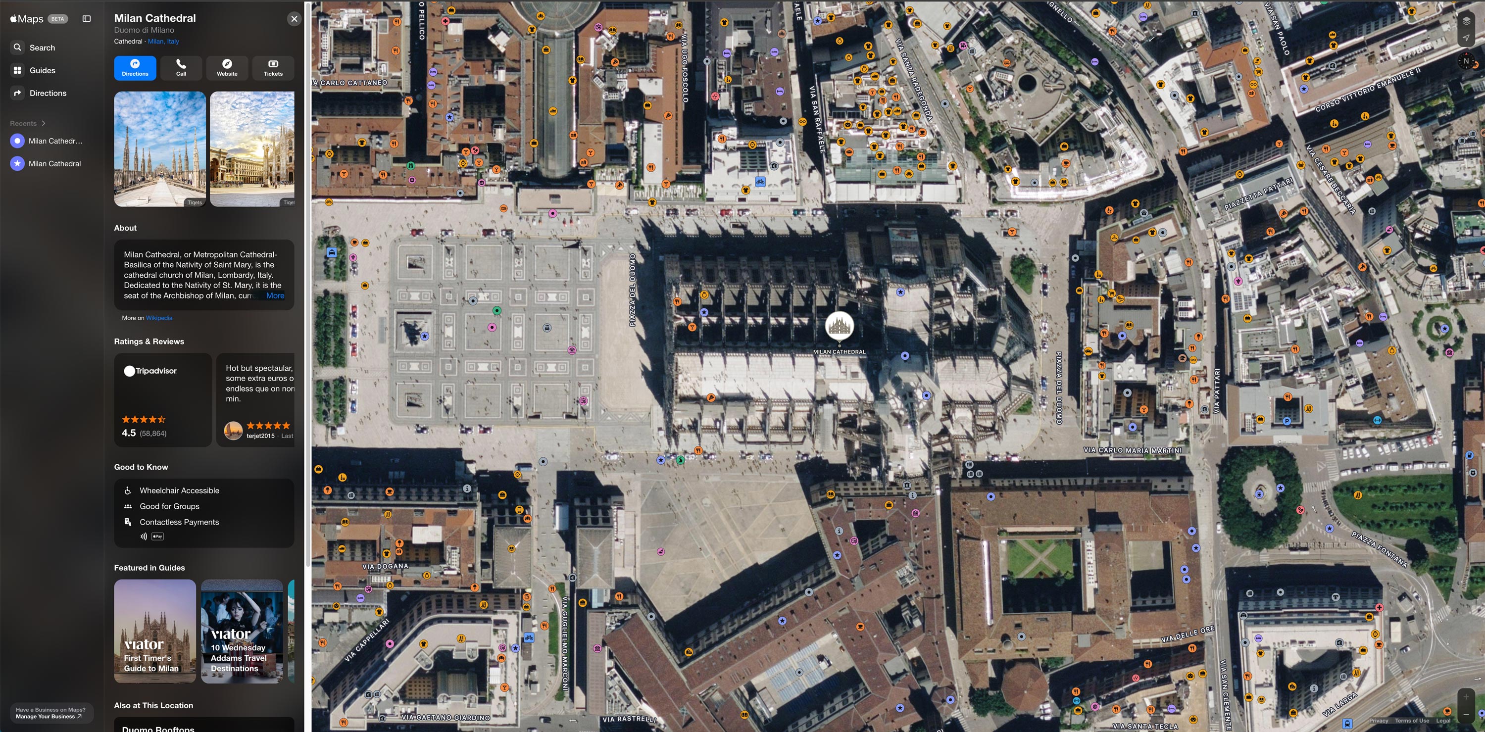 Come si può notare facilmente, la nuova piattaforma web di Mappe Apple offre un'esperienza utente che ricalca fedelmente quella dell'applicazione mobile, consentendo agli utenti di navigare e interagire con le mappe in modo intuitivo e familiare.