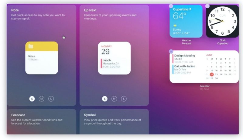 - design, dock e un centro notifiche ridisegnati. MacOS Big Sur ha un nuovo design: ogni singolo elemento è stato ridefinito, dalla curvatura degli angoli delle finestre alla palette di colori e materiali. Le icone nel Dock sono state ridisegnate per uniformarle a quelle usate nell’intero ecosistema Apple, ma senza rinunciare alla personalità del Mac. Inoltre, i pulsanti e i controlli appaiono solo quando servono e si ritraggono quando non servono. L’intera esperienza risulta più pulita, fresca e familiare, con meno distrazioni visive, per dare spazio e risalto ai contenuti dell’utente. Presente adesso un nuovo centro di controllo che dà accesso veloce ai controlli della Scrivania, mentre il Centro Notifiche aggiornato offre notifiche più interattive e widget ridisegnati, disponibili in varie dimensioni. L’intera esperienza sembra più focalizzata, moderna e familiare, riducendo quella che Apple ha definito la “complessità visiva” dei precedenti sitemi operativi, e portando i contenuti in primo piano