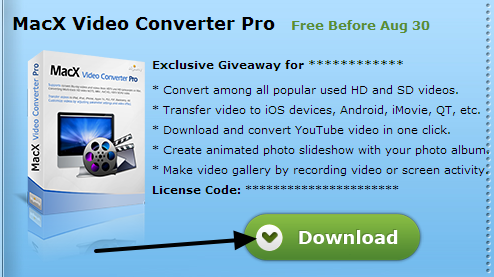 Per ottenere una licenza gratuita di MacX Video Converter Pro, andare in questa pagina entro il 30 Agosto 2013