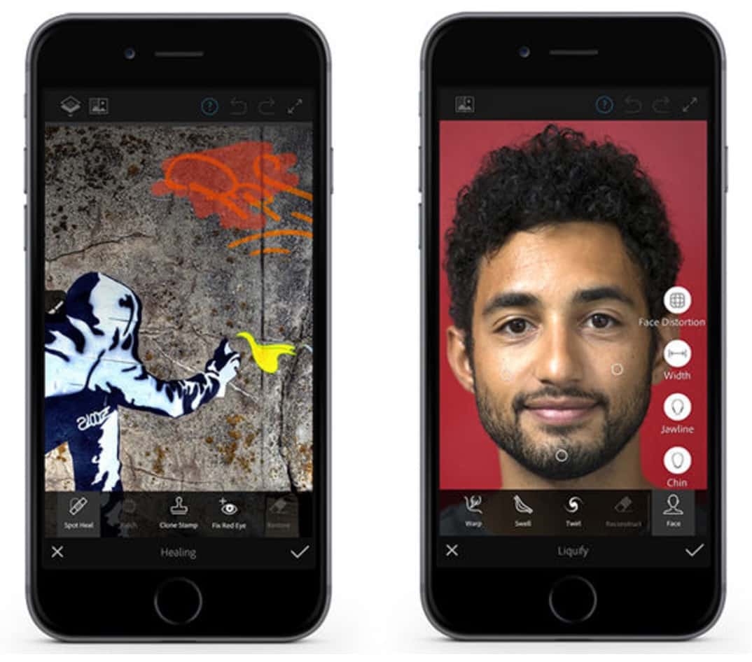 Adobe Photoshop Fix è la versione "mobile" del celebre programma di foto editing. Sono sicuro che non ha bisogno di presentazioni. Offre tante funzionalità base come ritaglio, ridimensionamento, rotazione, rimozione occhi rossi, flip, modifica della luminosità, esposizione ed altro ancora.