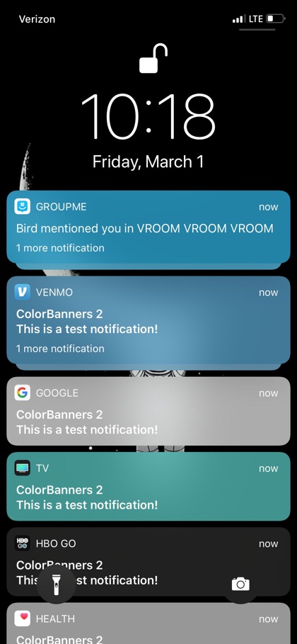 - ColorBanners 2: permette di colorare e personalizzare i banner di notifica nella schermata di blocco di iPhone. Il colore dei banner viene preso direttamente dal colore principale dell'icona dell'app che invia le notifiche, ma volendo lo puoi personalizzare in base ai tuoi gusti. Costa 1$