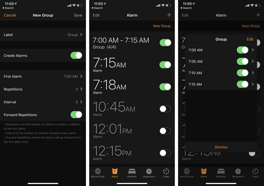 - AlarmGroups: molto utile per creare gruppi di allarmi/sveglie da personalizzare e modificare a piacimento. E' un tweak utile per chi ha bisogno di più sveglie per alzarsi al mattino