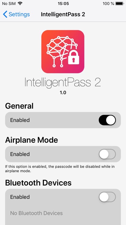 - IntelligentPass 2: disattiva automaticamente Touch ID e Face ID o passcode quando stabilisce che non sono necessari. Ad esempio li disattiva quando lo smartphone è in modalità Aereo, quando è collegato ad un dispositivo Bluetooth "fidato", mentre è in carica, quando le cuffie sono collegate, quando stai ascoltando musica, ad orari pre-impostati e quando lo smartphone è collegato a reti WiFi sicure. Costa poco meno di 3$