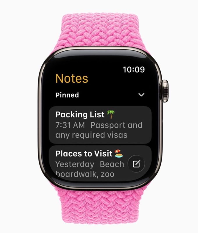 - L'app Note su Apple Watch: è possibile creare, visualizzare e sbloccare note vocalmente o con la tastiera, con supporto per checklist e sincronizzazione automatica