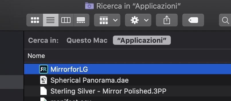 - rinominare l'app in modo che il suo nome sia tutto attaccato. Nel mio esempio l'app si chiamava Mirror For LG TV, io l'ho rinominato in MirrorforLG. Per rinominarla, basta cliccarci sopra 1 volta col mouse, poi premere Invio sulla tastiera e digitare il nuovo nome