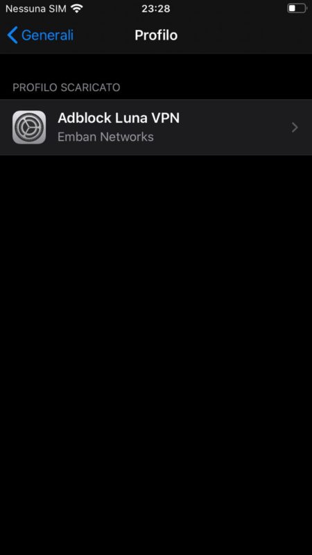 - A questo punto vai in Impostazioni > Generali > Profilo > AdBlock Luna VPN e cliccaci sopra