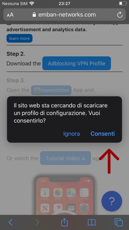 - Quando compare la finestra popup come quella seguente, clicca su CONSENTI