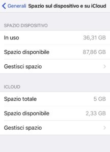 - Andiamo su Impostazioni -> Generali -> Spazio sul dispositivo e su iCloud -> Gestisci spazio (SPAZIO DISPOSITIVO)