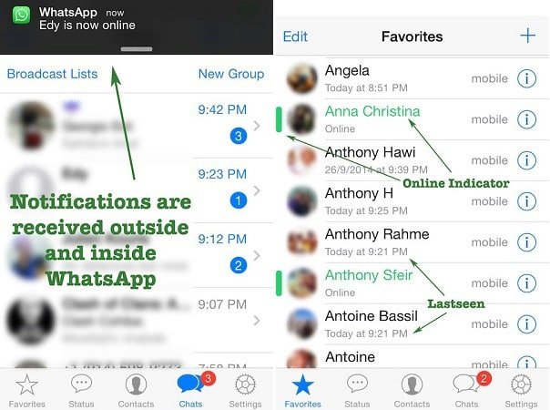 Notifica quando un contatto usa Whatsapp ed è online in chat