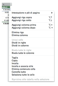 Anche molti oggetti dispongono di menu di scelta rapida, con comandi utilizzabili sugli oggetti. I menu di scelta rapida sono particolarmente utili quando lavori con tabelle e grafici.
