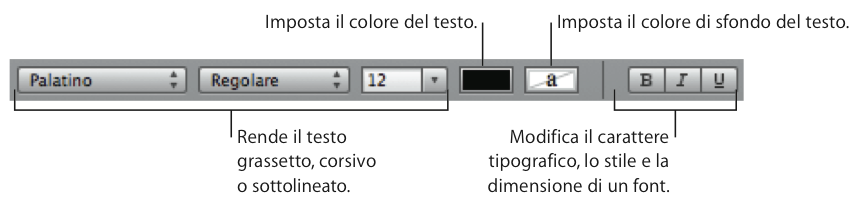 Utilizzando la barra formato, il menu Formato e la finestra Font puoi modificare il testo in modo semplice e veloce. Quando il testo è selezionato, puoi rendere il testo grassetto, corsivo o sottolineato