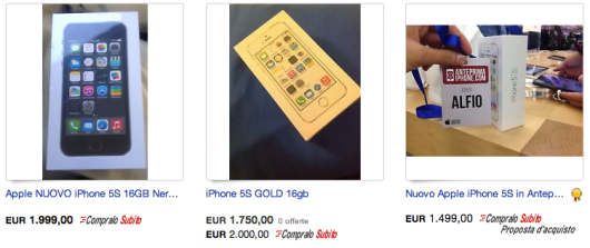 Oggi, però, in Italia abbiamo toccato il fondo: su eBay ci sono persone che vendono il proprio iPhone 5S a prezzi che vanno dai 1500 ai 2000€.