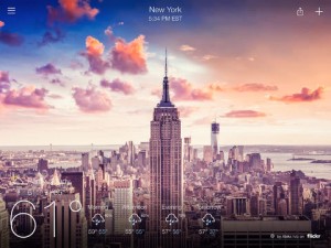 Ma non solo! Yahoo Meteo ha curato anche l'aspetto estetito dell'applicazione stessa, ponendo come sfondo le immagini, in alta definizione del luogo interessato, attingendole da flicker