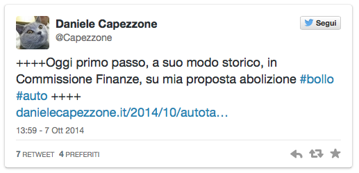 La proposta è stata formulata da Daniele Capezzone, parlamentare di Forza Italia, che definisce il bollo una ‘tassa tra le più odiate dai contribuenti italiani’. Trascorsi i tre anni il bollo auto sarà tariffato in base alle emissioni di CO2 della vostra vettura.