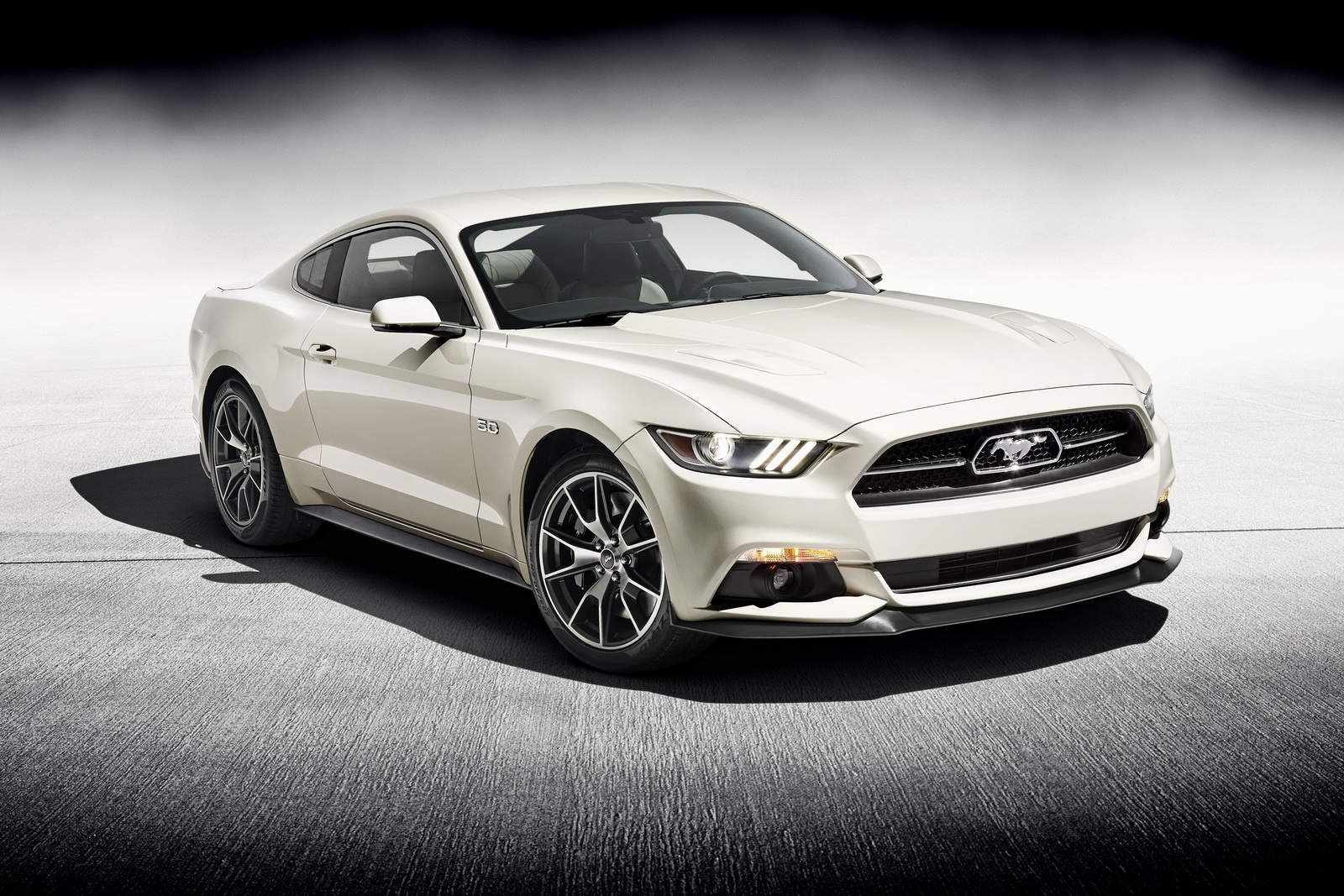 [dropcap]F[/dropcap]ord: Ecco la nuova Mustang in versione 50Th Anniversary, che verrà prodotta in soli 1964 esemplari. Infatti quest'anno la Mustang compie 50 anni da quando il primo modello vene messo in commercio nel 1964. Oltre al numero limitato di esemplari la Mustang 50Th sarà disponibile in due nuovi colori Wimbledon bianchi (il colore della prima Mustang) e Kona blu.