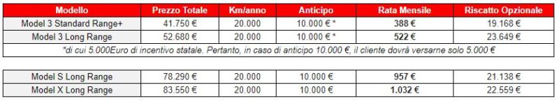 I 388 euro per il leasing della Model 3 valgono solo nel caso di contratto per 5 anni. In caso di leasing a 3 o 4 anni i prezzi aumentano.