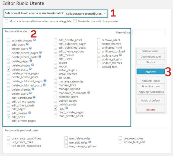 Modificare, gestire, aggiungere nuovo ruoli Utenti su Wordpress