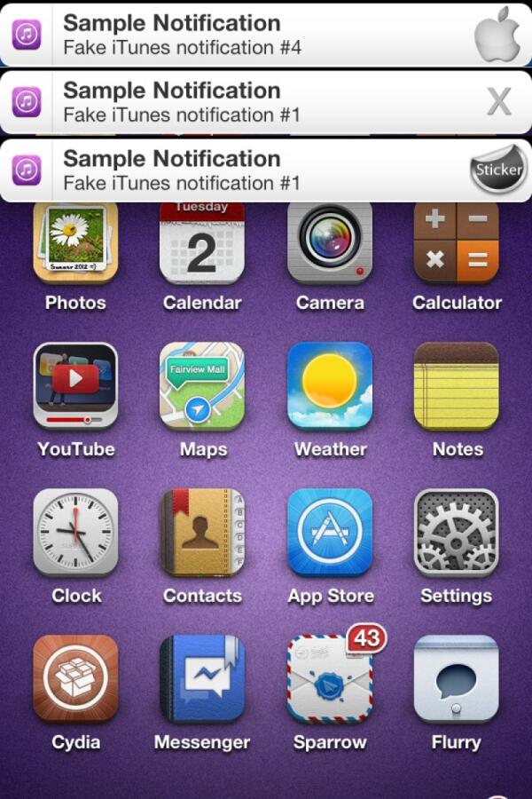 Stiker: personalizzare la reazione dei banner di notifica. [CYDIA]