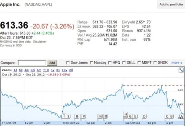 Le azioni Apple continuano a scendere: ora sotto i 600$