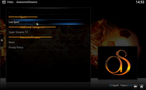 Awesome Streams: Addon IPTV per Kodi per vedere tutto lo sport gratis