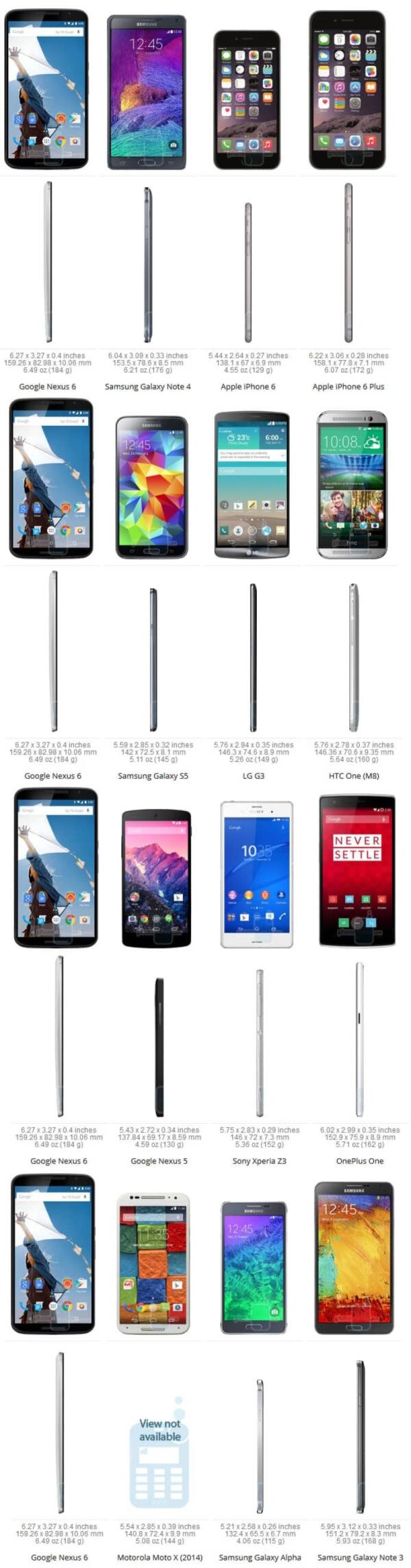 Confronto tra giganti: Nexus 6 vs Galaxy Note 4 vs iPhone 6 Plus