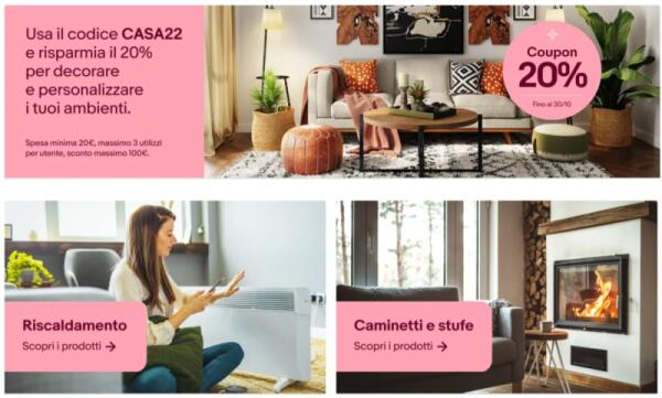 Coupon Sconto eBay Ottobre 2022: CASA22 20%