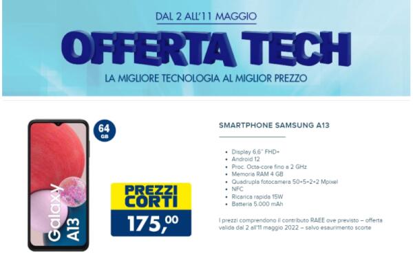 OFFERTA Samsung Galaxy A13 a 175 euro da Esselunga | Da Prendere