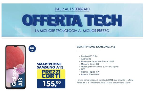 OFFERTA Samsung Galaxy A13 a 155 euro da Esselunga | Da Prendere