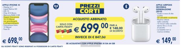 iPhone 11 ed Apple AirPods 2 gen a 699 euro da Esselunga