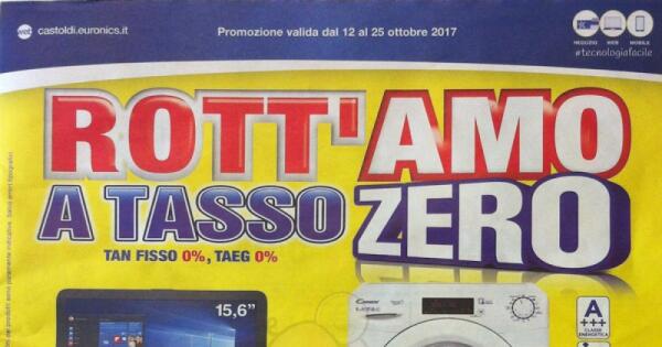 Volantino Euronics "Rott'amo a Tasso Zero" fino al 25 ottobre