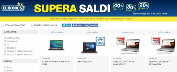 Euronics Star Days di Gennaio 2018 online: Notebook ed altro a prezzi scontati