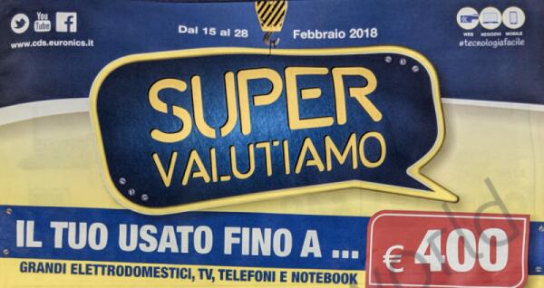 Volantino Euronics Febbraio 2018: SUPER VALUTIAMO fino a 400 euro il tuo usato