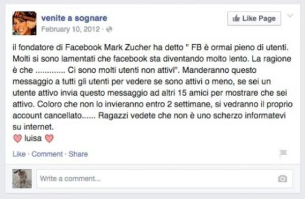 [Bufale dal Web] Facebook sta esaurendo lo spazio e vi cancella se siete utenti inattivi