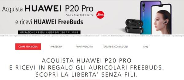 Acquista un Huawei P20 Pro e ricevi in regalo le cuffie wireless Huawei FreeBuds dal valore di 160€