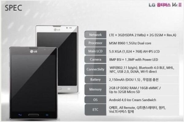 LG Optimus Vu 2: caratteristiche e scheda tecnica