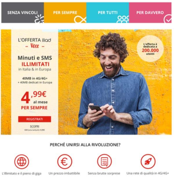 Iliad Voce: 5 Euro per Minuti ed SMS Illimitati in Europa