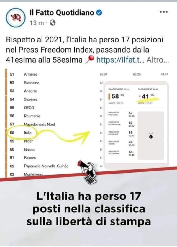 Libertà di Stampa in Italia: si perdono 17 posizioni in classifica