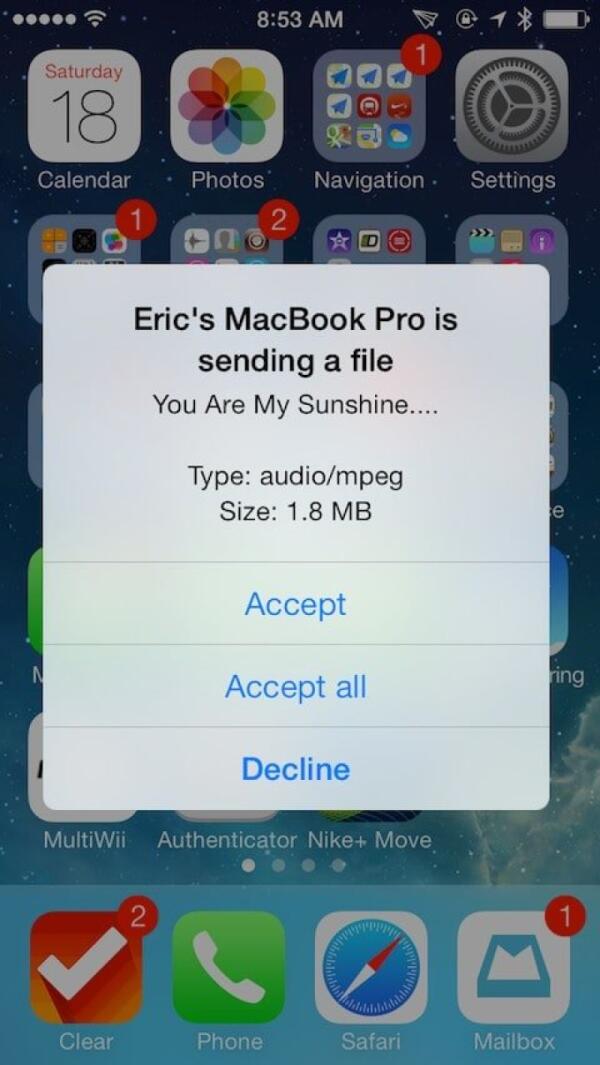 Migliori Tweak Cydia per iOS 8: download tweak AirBlue Sharing