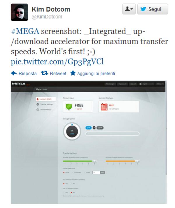 Finalmente è arrivato Mega, il successore di MegaUpload