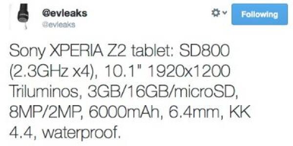Xperia Tablet Z2: prima foto ufficiale e caratteristiche tecniche