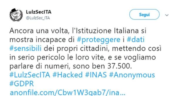 Hackerato il sito del patronato INAS: Trafugati dati di 37mila utenti