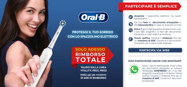 Oral-B rimborsa fino a 60 euro sullo spazzolino elettrico [ULTIMO GIORNO]