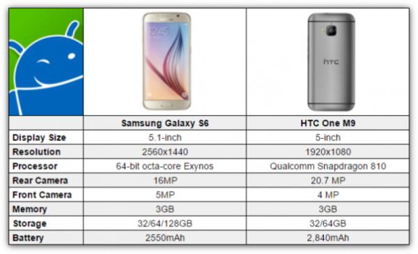 Confronto tra Samsung Galaxy S6 e HTC One M9