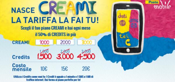 PosteMobile Creami raddoppia i Crediti con tariffe a partire da 10 euro al mese