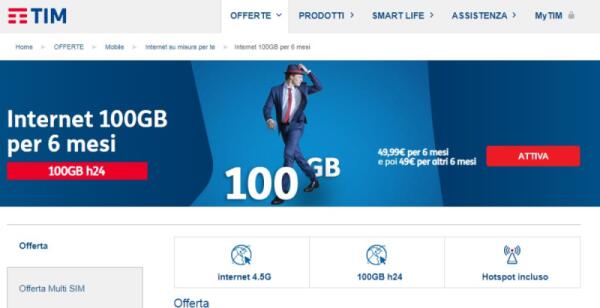 Nuove Tariffe TIM solo Internet 100 e 200GB attivabili