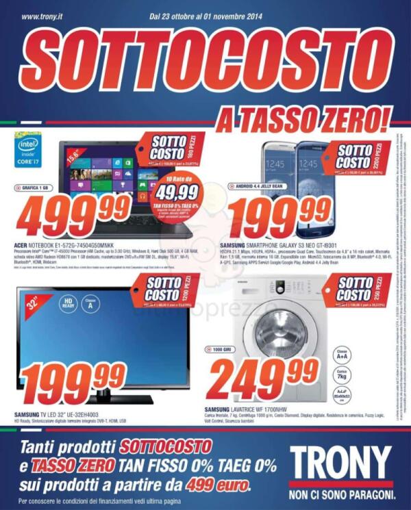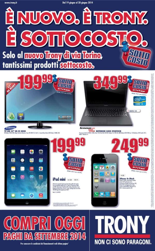 Il SOTTOCOSTO arriva anche da Trony nell'ultimo volantino di Settembre 2014