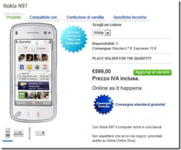 Nokia N97: disponibile su NokiaShop