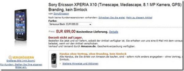 Sony Ericsson Xperia X10: in pre-ordine a 700€