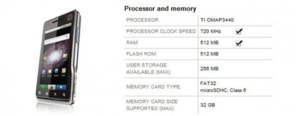 Motorola Milestone XT720: processore a 720Mhz, video a 720p