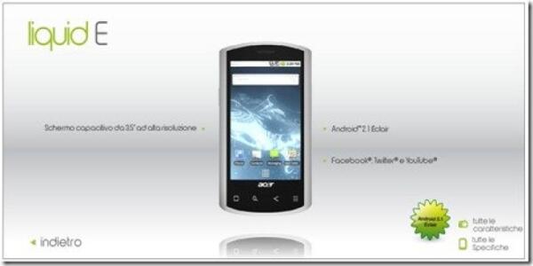 Acer Liquid E – Scheda Tecnica e Caratteristiche Ufficiali